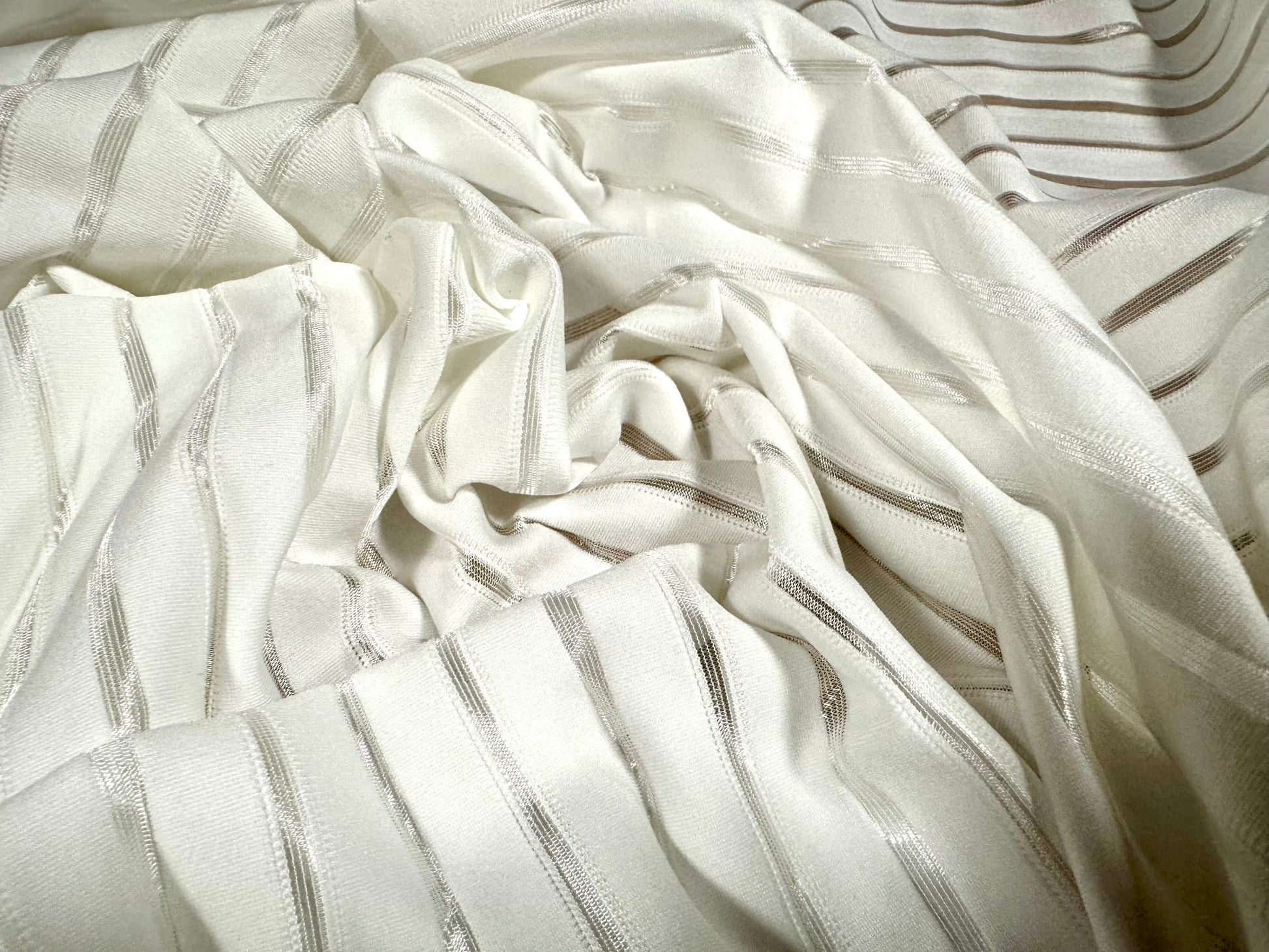 Stretch spandex rib jersey fabric, per metre - burnout stripe - cream