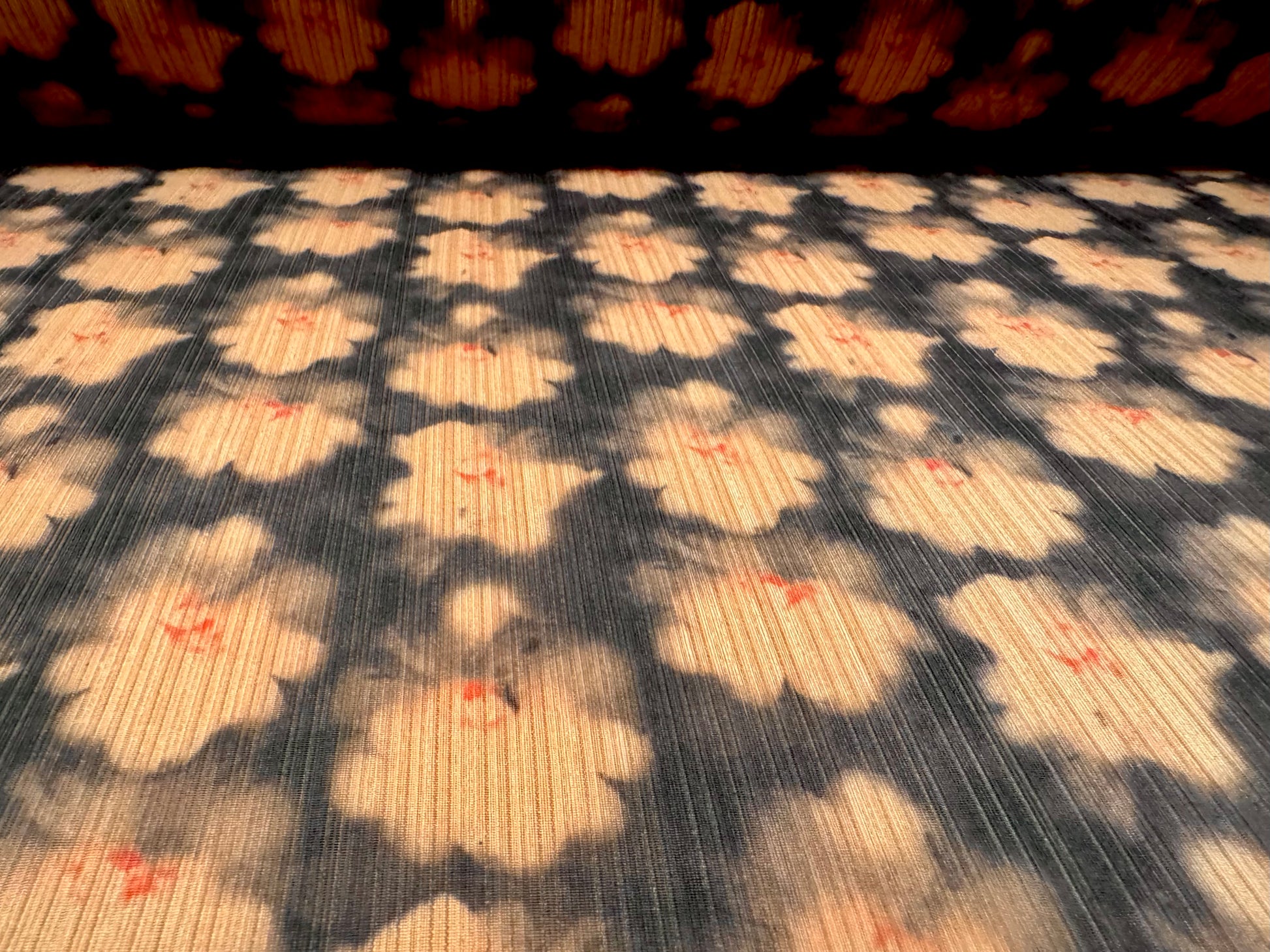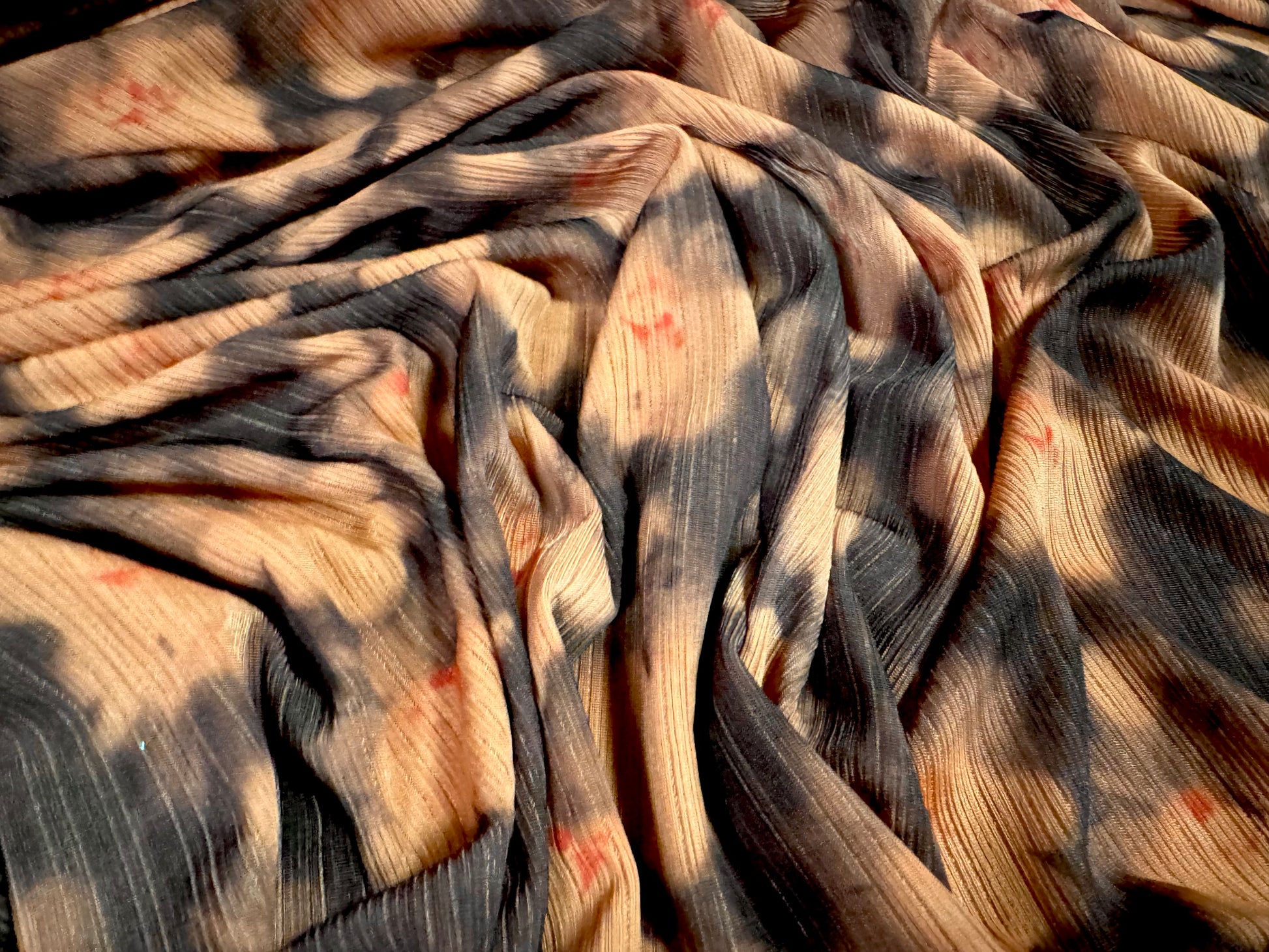 Stretch spandex ribbed jersey fabric, per metre - flower print - midnight & tan