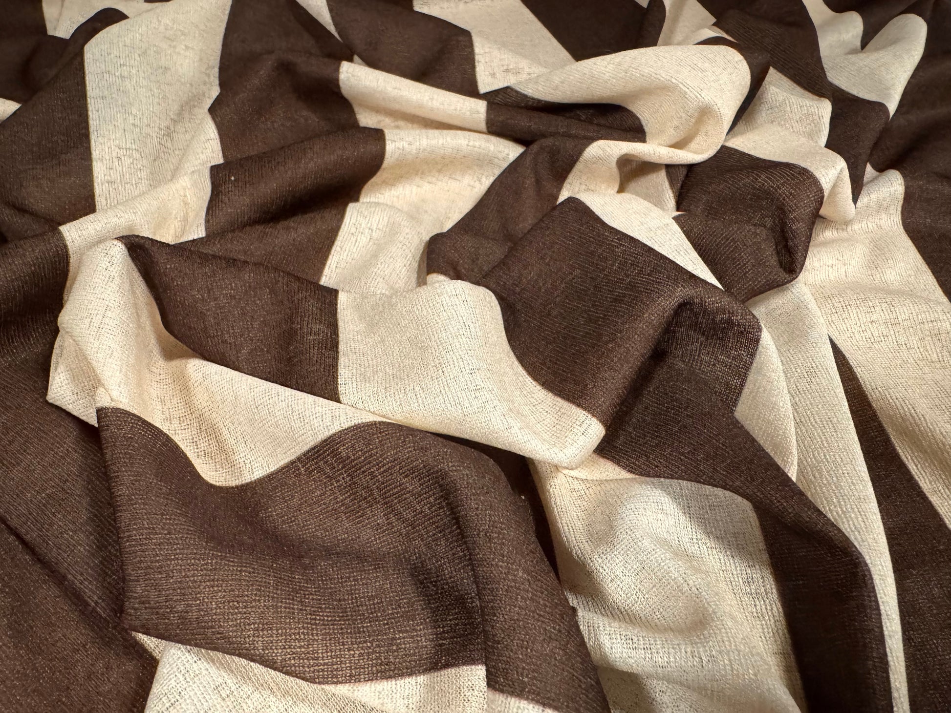 Thick & thin stretch spandex single jersey fashion fabric, per metre - stripe print - brown & cream
