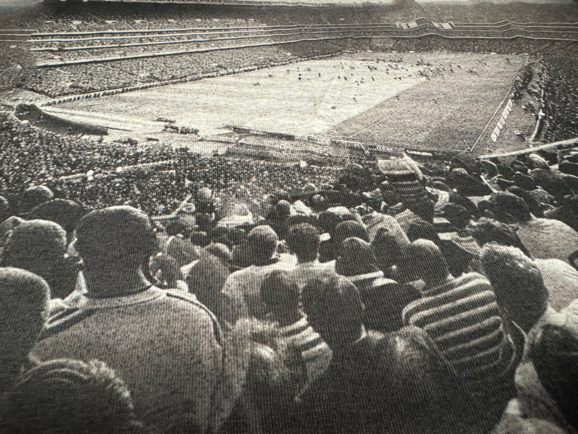 Thick & thin stretch spandex single jersey fashion fabric, per metre - Wembley Cup Final print - monochrome