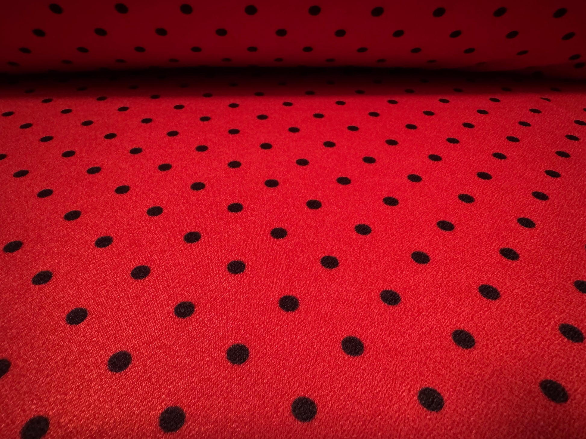 Valentino crepe stretch spandex jersey fabric - per metre - ladybug polka dot print - red & black