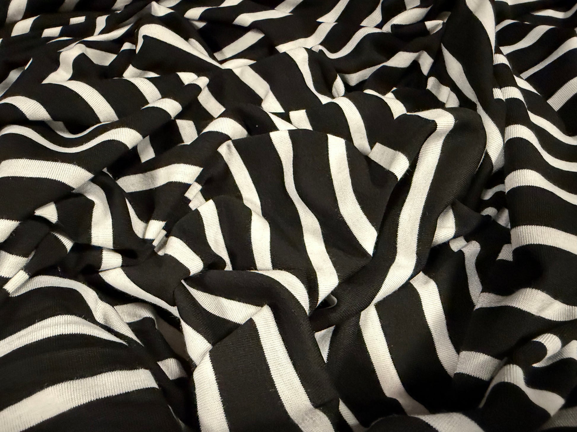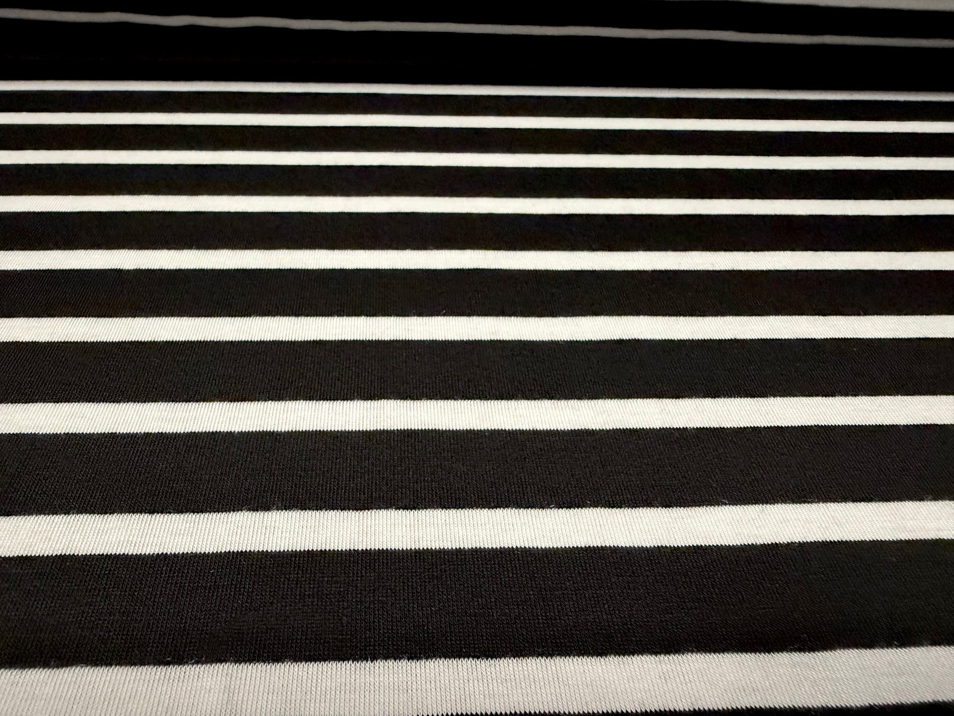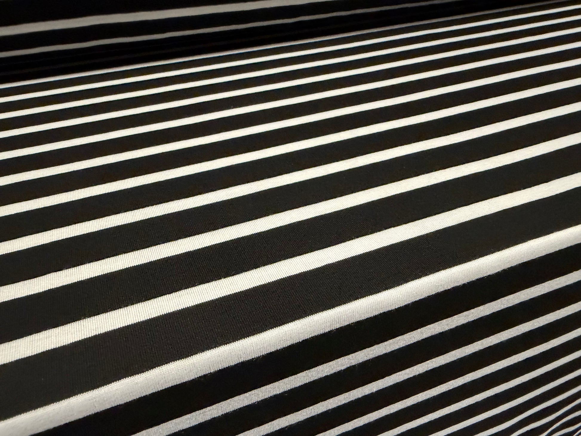 Viscose spandex stretch single jersey fabric, per metre - stripe - black & white