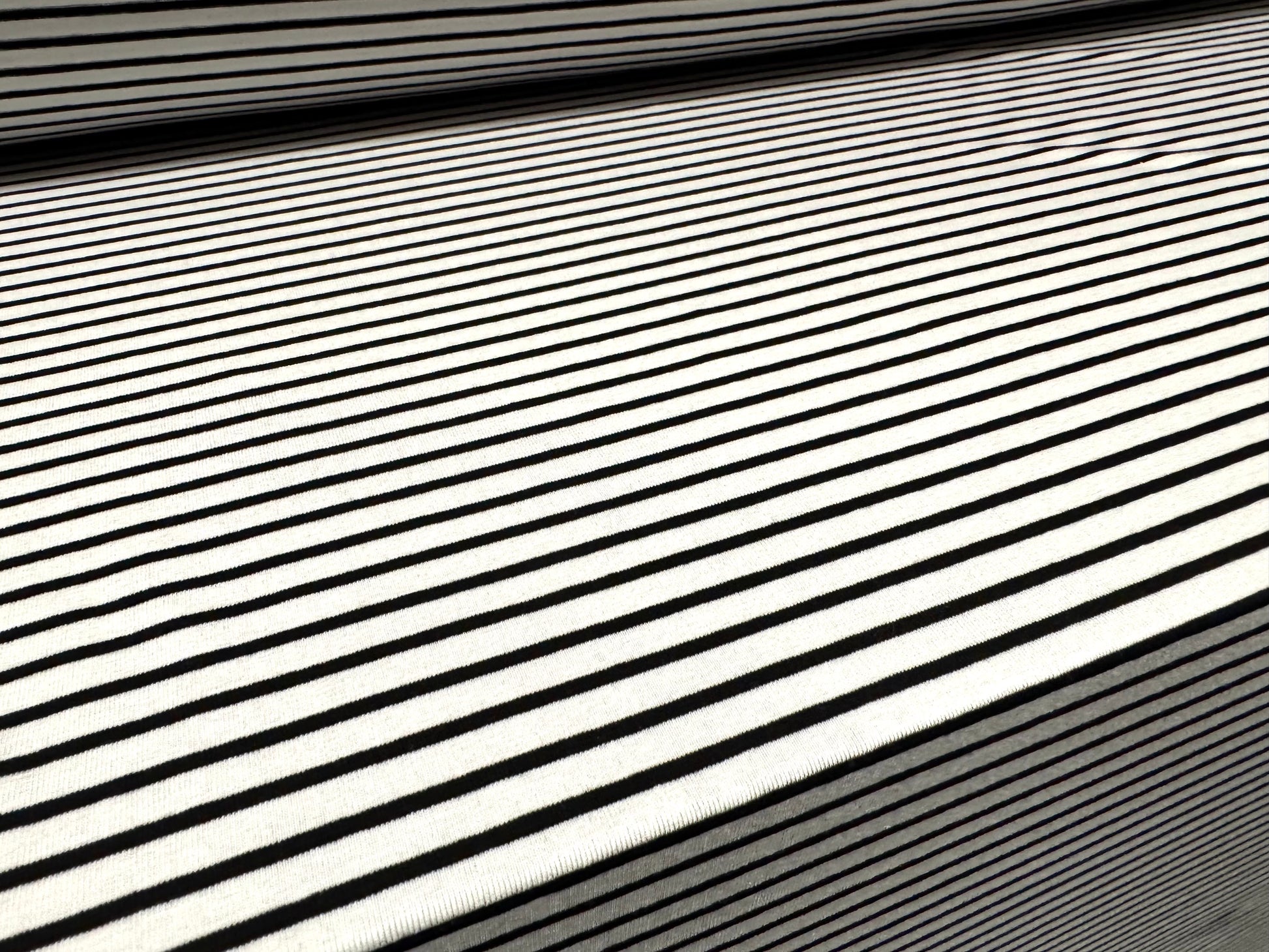 Viscose spandex stretch single jersey fabric, per metre - stripe - black & white