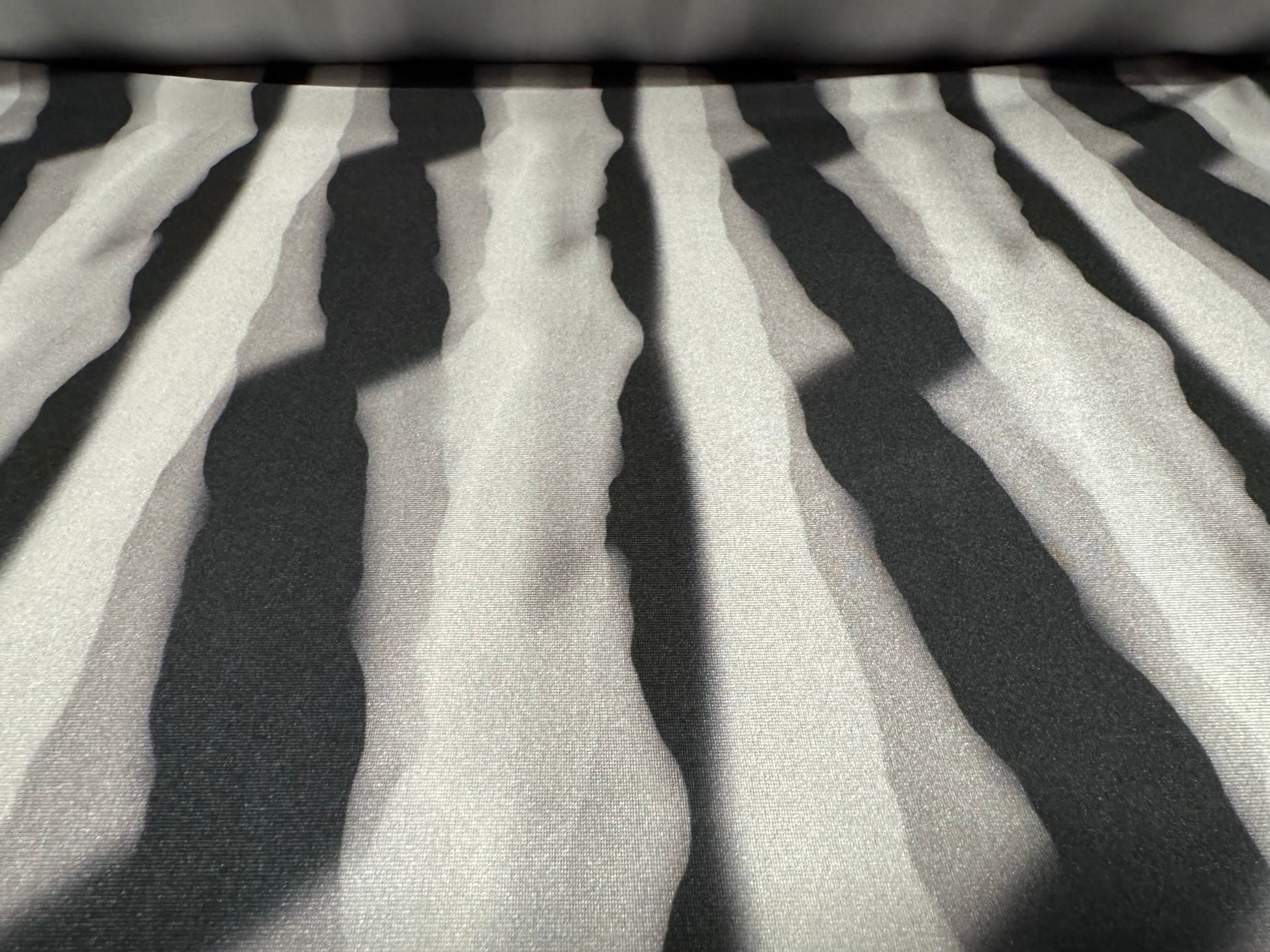 Yoga stretch spandex jersey fabric, per metre - smudge stripes print - grey