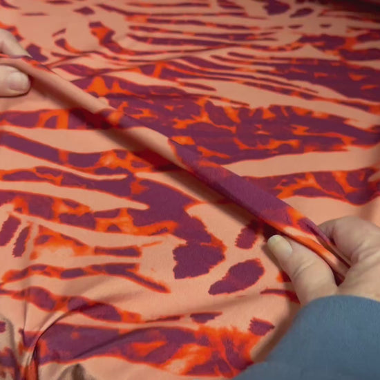 Yoga stretch spandex jersey fabric, per metre - stylised animal print - coral