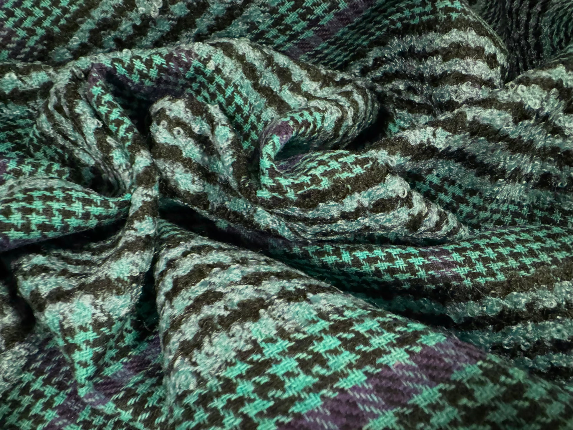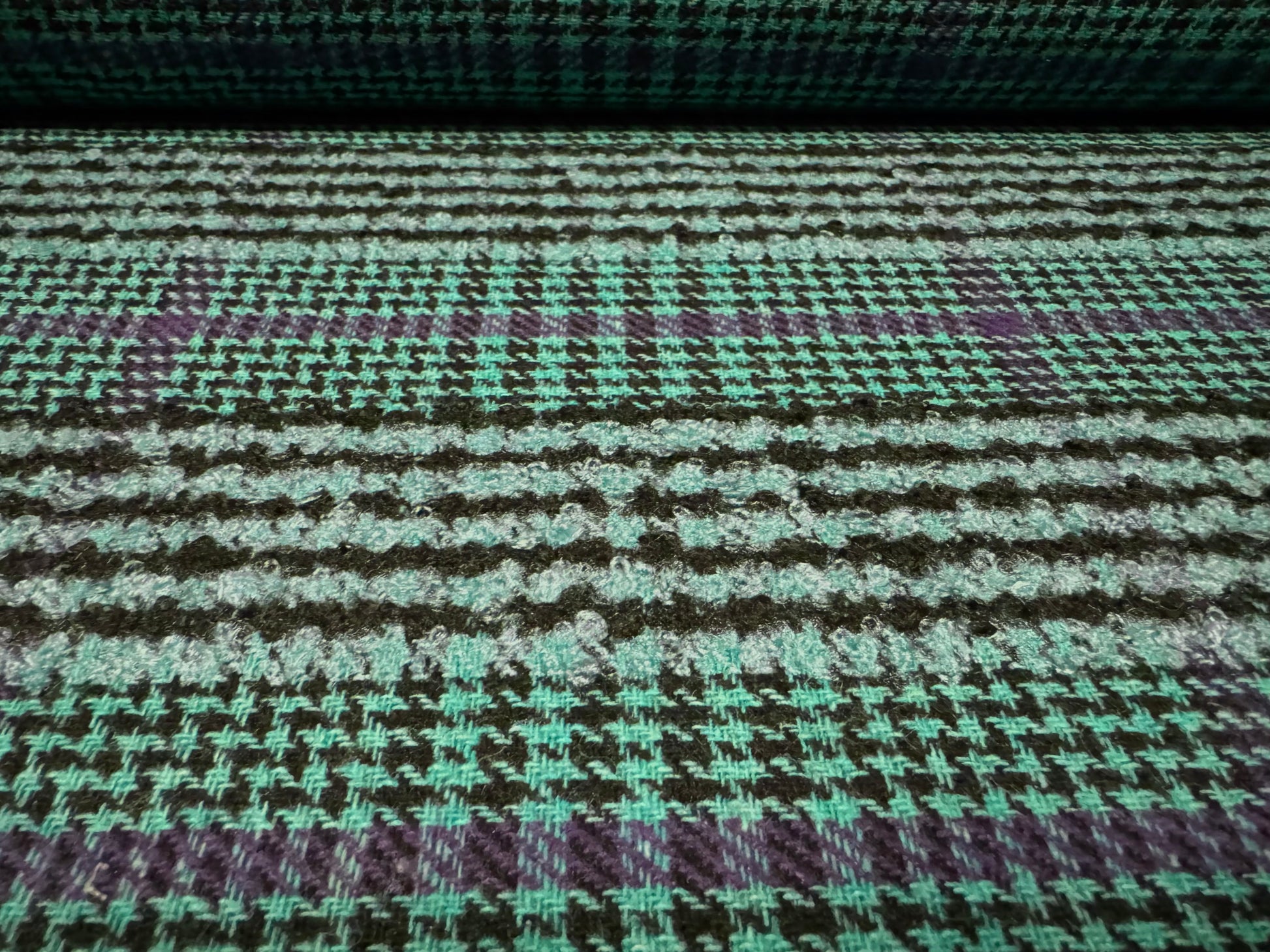 Heavyweight wool bouclé fabric, per metre - plaid - mint green & purple