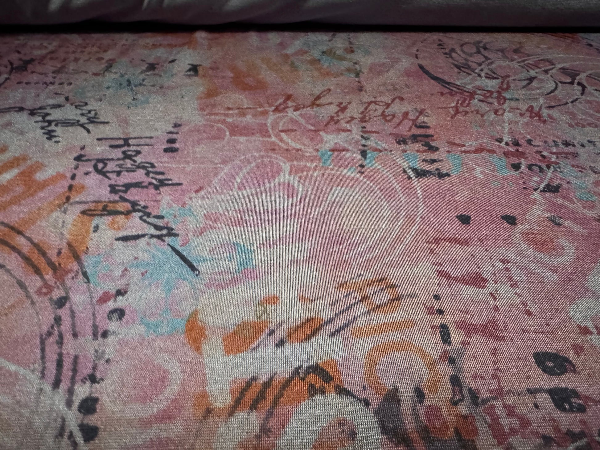 Finely textured stretch spandex Jersey fabric, per metre - fashion print no.2 - grey & pink