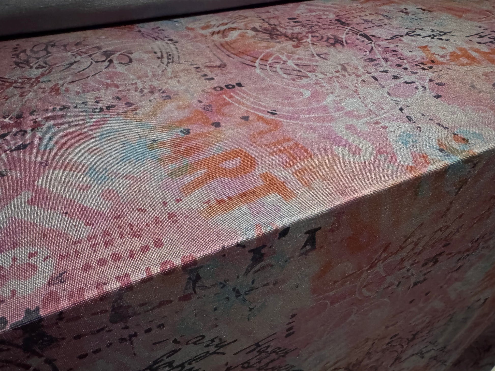 Textured stretch single jersey fashion fabric with limited edition print. Polyester spandex. Width 150 cms.