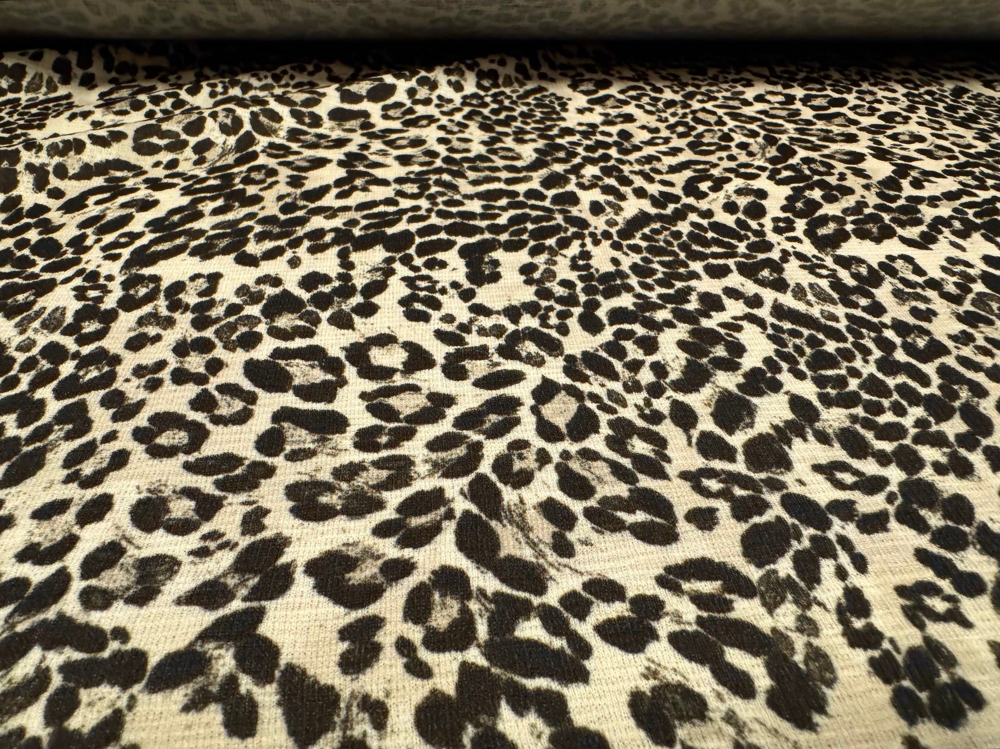 Strawcloth stretch spandex double jersey fabric, per metre - cheetah print - cream