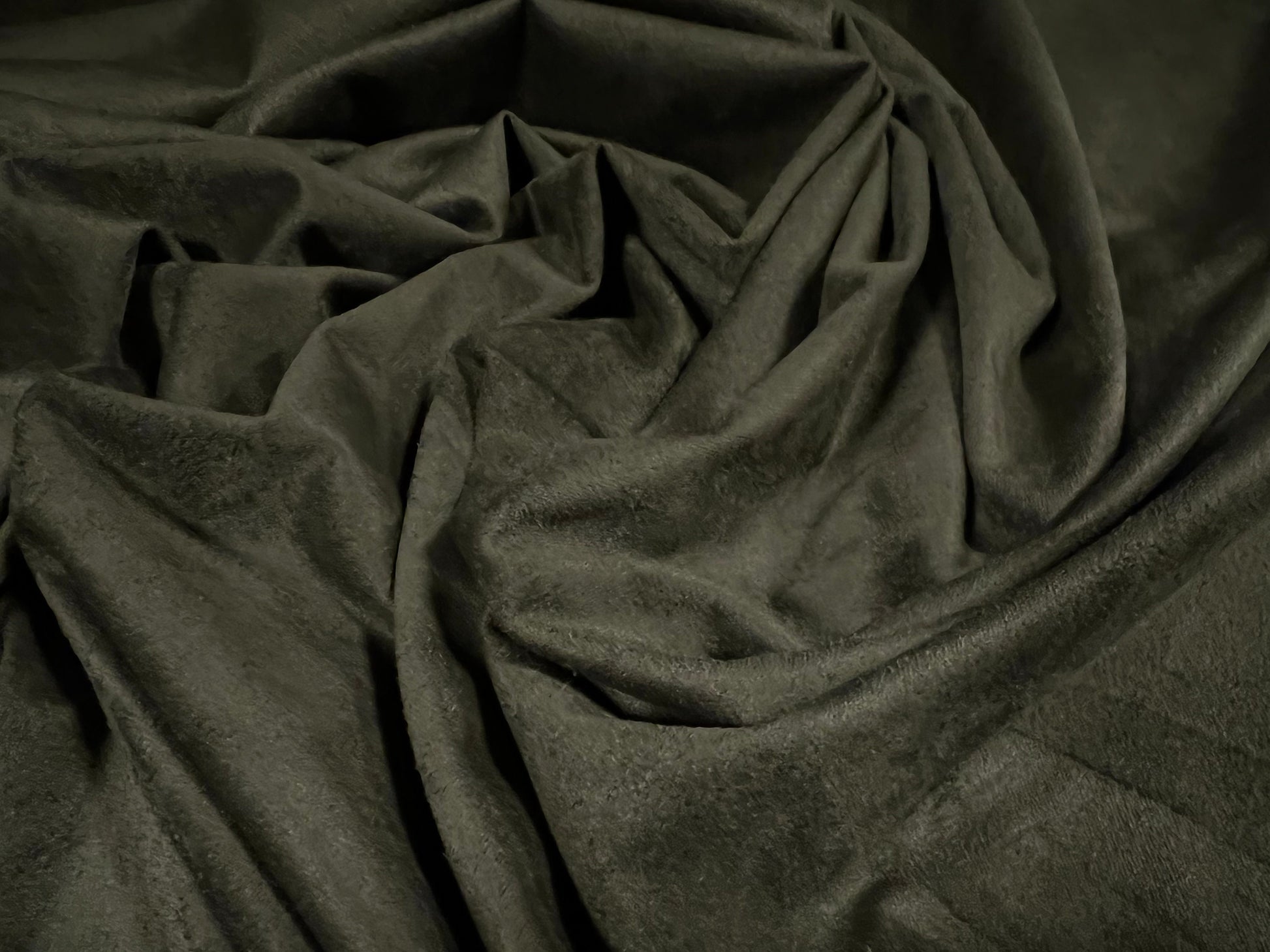 Faux suede stretch spandex jersey fabric, per metre - plain - dark khaki green