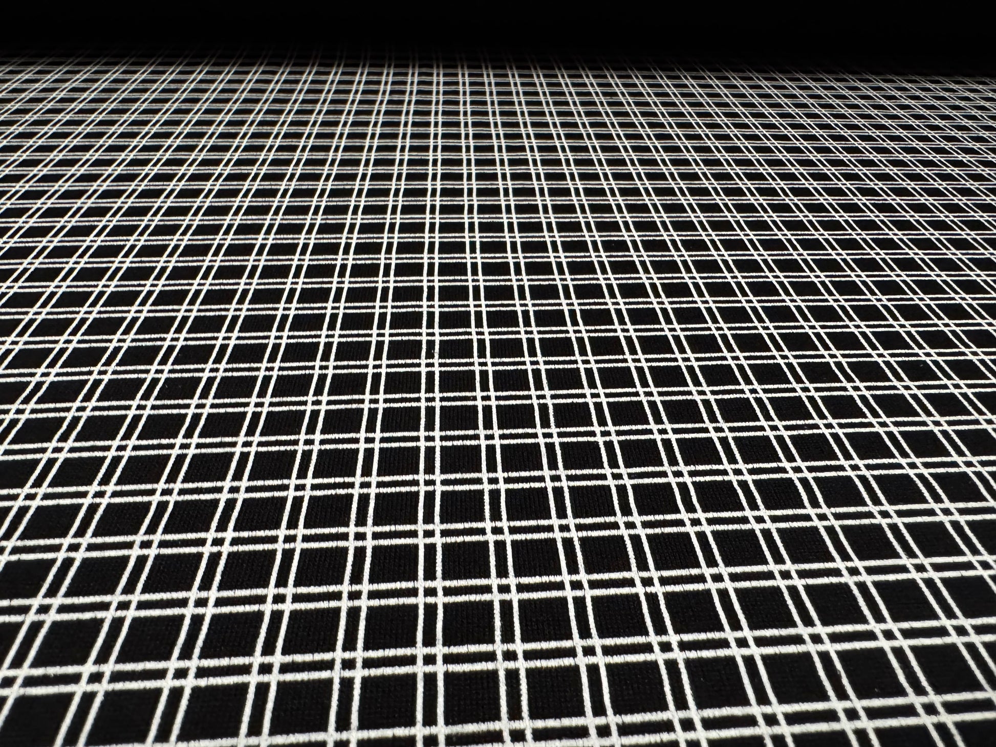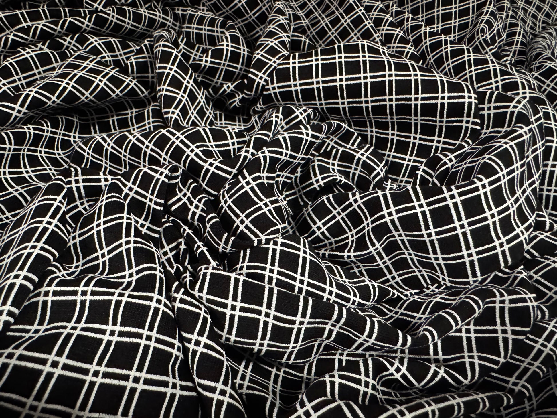 Viscose spandex stretch jersey fabric, per metre - check print - black & white