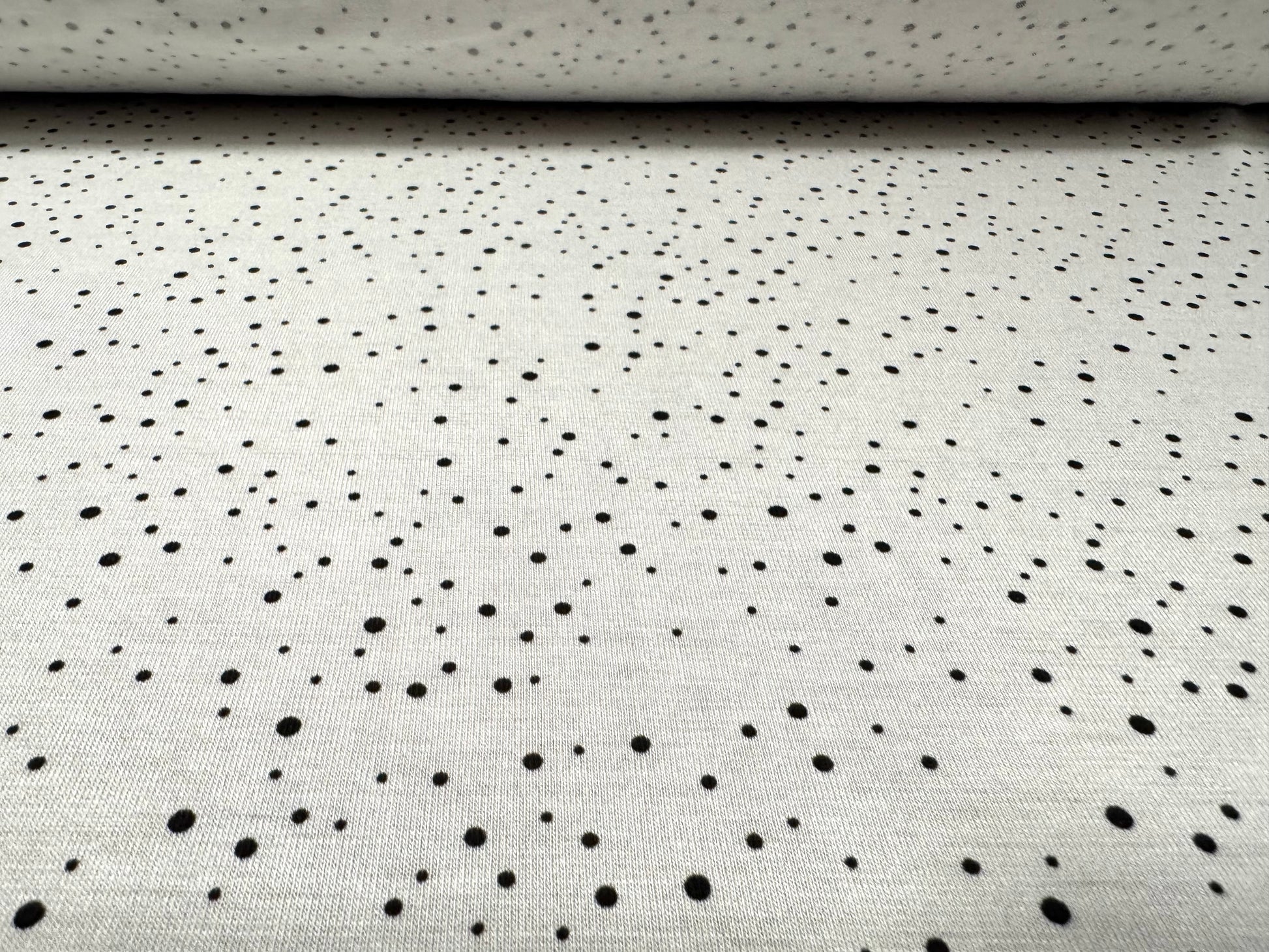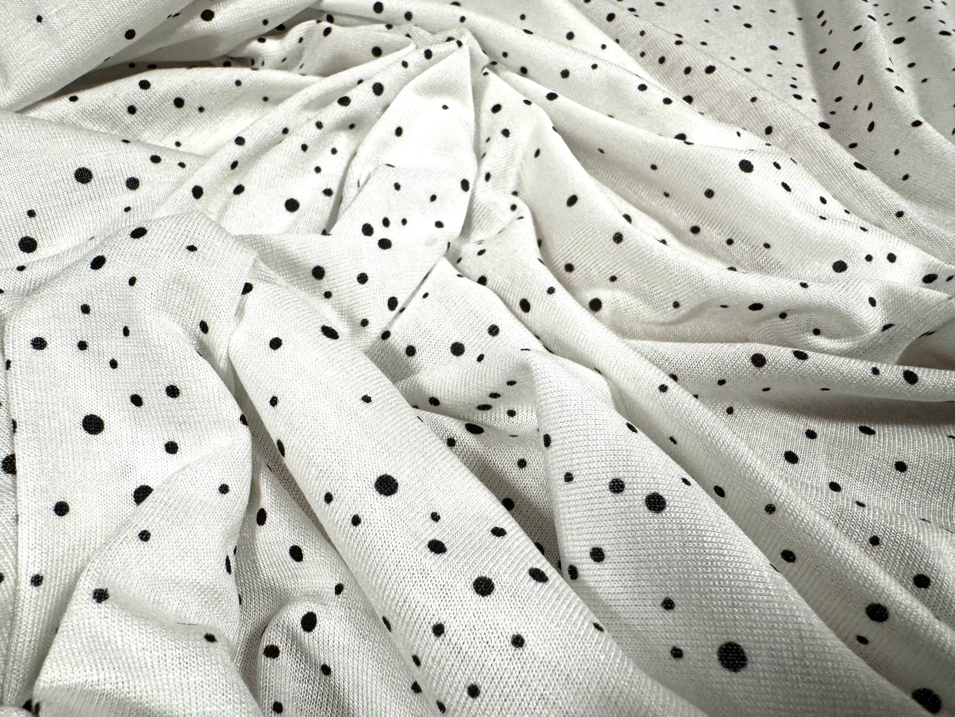 Viscose spandex stretch single jersey fabric, per metre - spot print - white & black